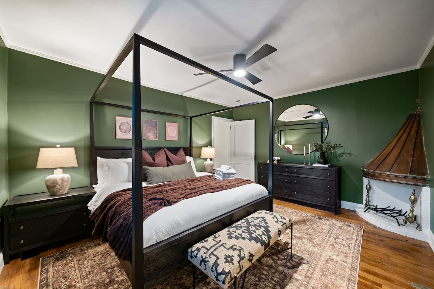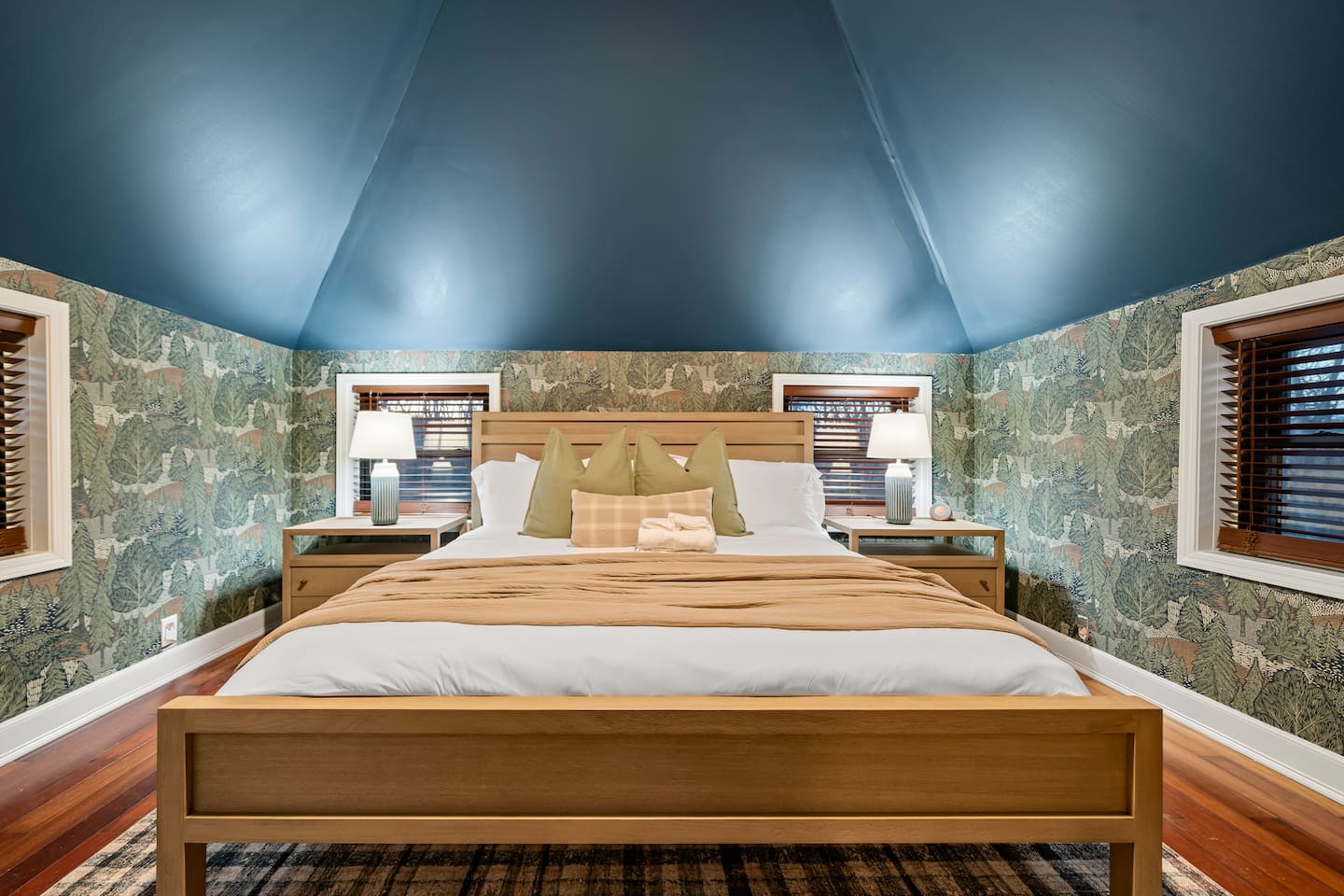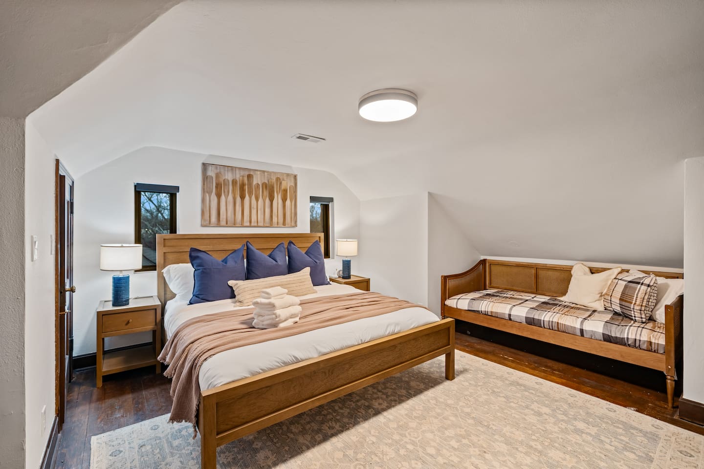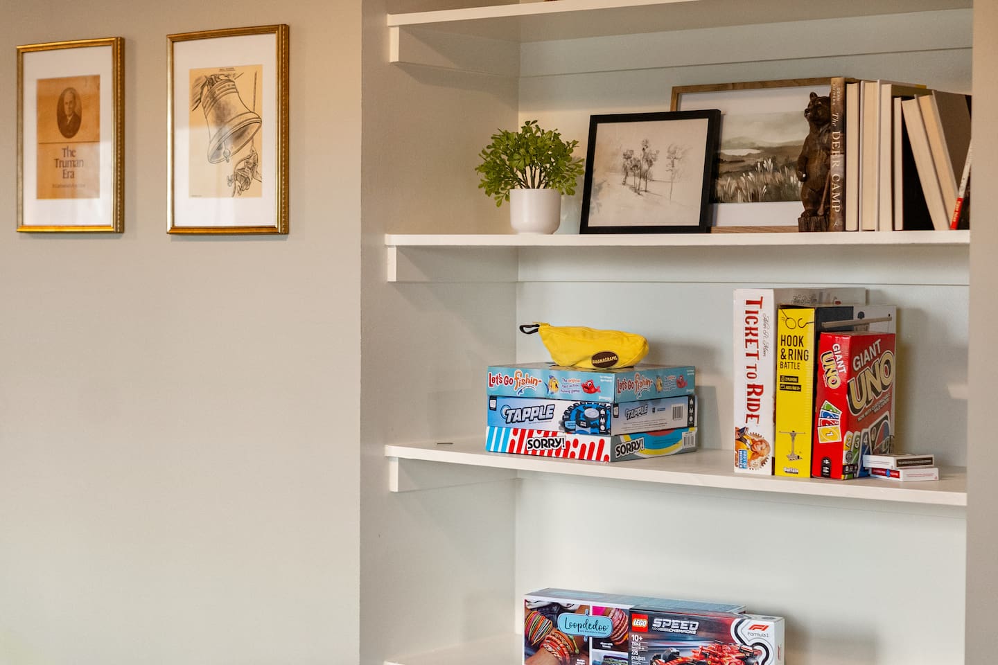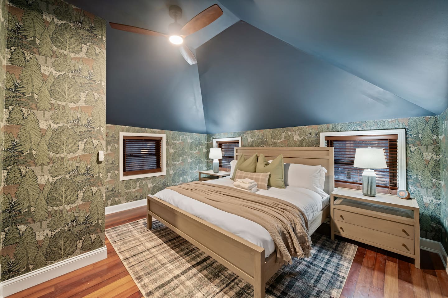 KEY FEATURES: 🌲 Sleeps 21! 5 bedrooms in the main house + 8 beds in the historic creekside cabin (Read more below) 🌲 5 full bathrooms, including a luxurious clawfoot soaking tub & multiple rain showers 🌲 Modern renovated kitchen + full outdoor kitchen with grill, ice trough, & mini fridge 🌲 Zen garden with hot tub, sauna, cold plunge, & outdoor shower 🌲 Firepit lounge w/ natural gas + outdoor dining for 21 🌲 Stargazing dome, movie theater, swing set & rock wall 🌲 Private disc golf course, archery range, treehouse, & tug-a-war 🌲 Outdoor games like bucket golf & portable soccer nets 🌲 Tesla Universal EV Charger w/ Integrated J1772 adapter 🌲 Game room w/ arcade games, pool table, darts, ping pong, & more! 🌲 Fast 3 Gig Google Fiber WiFi + Smart TVs + Netflix access 🌲 Pets welcome ($100 per pet fee) 🌲 Newly renovated, first available stay December 22nd 𖠰 Be Among the First to Stay 𖠰 We are so excited to have started welcoming our first guests in December 2025! The Ev Lodge was designed as a place for families & friends to reconnect where modern comfort meets the nostalgic spirit of summer camp. 𖠰LARGE GROUPS-READ BEFORE BOOKING𖠰 Ev Lodge comfortably sleeps up to 21 guests across two unique spaces. For the best experience with 10+ adults, we strongly recommend only booking mid-March through mid-November. During winter months guests sleeping in the cabin should plan for cozy layers and may prefer to keep kids or cold sensitive guests in the main house. This historic cabin by the creek is a structure dating back to the 1800's where a young President Truman is said to have spent time! It has been transformed into a bunk-style retreat with 4 full-size bunk beds, creating a nostalgic summer camp feel for kids or group getaways. Equipped with an electric fireplace, electric space heater, 3 ceiling fans, AC, and walkie-talkies to stay connected with the main cabin! Located 200 yards away is the main cabin which sleeps 13 guests and features 5 beautifully designed bedrooms, each with a king-size bed and cozy duvet bedding. Two upstairs bedrooms include twin bed sleeping nooks, perfect for little ones. A queen air mattress is stored in the upstairs hallway closet for added flexibility. 𖠰 BATHROOMS 𖠰 With 5 full bathrooms, everyone can get ready without a wait. The main floor primary suite features a clawfoot soaking tub for a touch of spa like indulgence. The second main floor bathroom includes a double vanity, dual rain shower heads, and heated floors! The basement bathroom offers a sleek rainfall shower and allows for easy access for those sleeping at "Camp Truman" by the creek. Each space is stocked with plush towels, toiletries, and thoughtful touches to make your stay effortless. 𖠰 KITCHEN DINING & LOUNGE 𖠰 At the heart of Ev Lodge is a renovated kitchen with stainless steel appliances. It’s perfect for everything from pancake mornings to serving up evening wine hours. Step into your indoor dining for 18 people with a kids table located in the living room. Let in the natural air by opening the 9 foot wide bi-fold doors to access your outdoor kitchen, equipped with a natural gas grill, mini fridge and ice trough. Enjoy outdoor dining for up to 21 guests under the string lights. Back inside, the living room invites you to unwind on a 13.5-foot sectional and gather around the cozy electric fireplace. This room is stocked with board games & arts and crafts so your kids will feel right at home! Unwind watching your favorite show on the large Roku Smart TV equipped with Netflix during your stay. 𖠰 OUTDOOR SPACE 𖠰 Ev Lodge’s 6-acre grounds are where the nostalgia truly happens. Relax in the Zen garden, complete with a hot tub, 4-person sauna, cold plunge, and outdoor shower. Watch the stars from the stargazing dome, toast s’mores at the firepit lounge, or enjoy dinner under the string lights. Adventure seekers will love the private disc golf course, laser tag, archery range, tug-of-war area, soccer nets, and bucket golf! Enjoy your morning coffee in the treehouse overlooking the creek or grab your favorite book and relax on the treehouse hammock floor. The swing set and rock wall are sure to bring out everyone’s inner kid! When the sun sets cue up your favorite film in the outdoor movie theater by the creek. With enough seating for 21 people, it's a perfect end to a perfect day. Just outside of the garage is a Tesla Universal EV Charger w/ Integrated J1772 adapter to conveniently charge any electric vehicle. Whether a Tesla or non-Tesla, get up to 44 mi of range added per hour at 11.5 kW. 𖠰 INDOOR ENTERTAINMENT 𖠰 Rainy days are no problem here. Head to the game room featuring arcade games, foosball, ping pong, pool table, darts, and a KC Current soccer zone! WiFi is lightning-fast (3 Gig Google Fiber) and the house includes a Netflix account. Board games and kids’ crafts are located in the living room to keep everyone entertained. 𖠰 Book Your Stay at The Ev Lodge & Experience Where Luxury Meets Nostalgia 𖠰