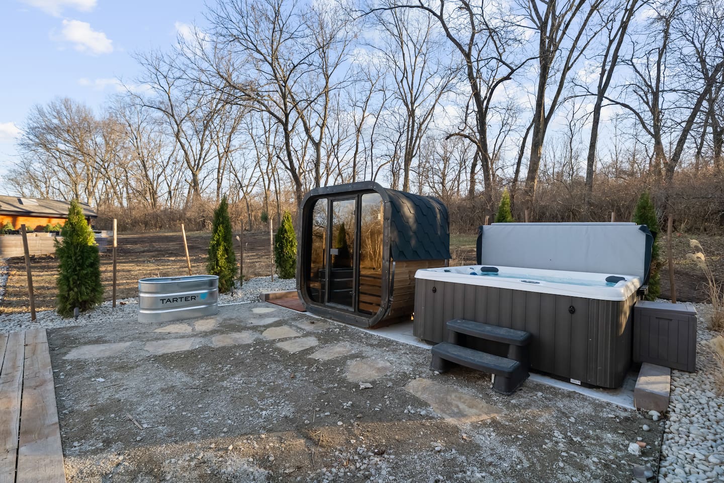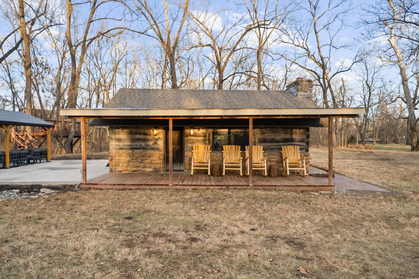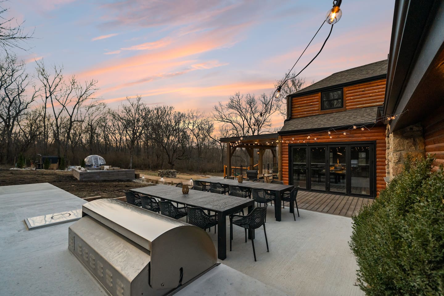 ð– ° Book Now For New Launch Rates! 30% Off Jan+Feb ð– ° Welcome to our pet-friendly modern cabin escape on 6acres! Sleeps 21, newly furnished w/ Crate&Barrel & packed w/ amenities! Enjoy the outdoor hottub/sauna/cold plunge/shower, stargazing dome, outdoor kitchen, firepit lounge, discgolf, treehouse, game room & more! Surrounded by the beauty of nature & you're still close in proximity to all KC has to offer! 17 min to Arrowhead/Royals Stadiums 21 min to Downtown KC 40 min to MCI Airport