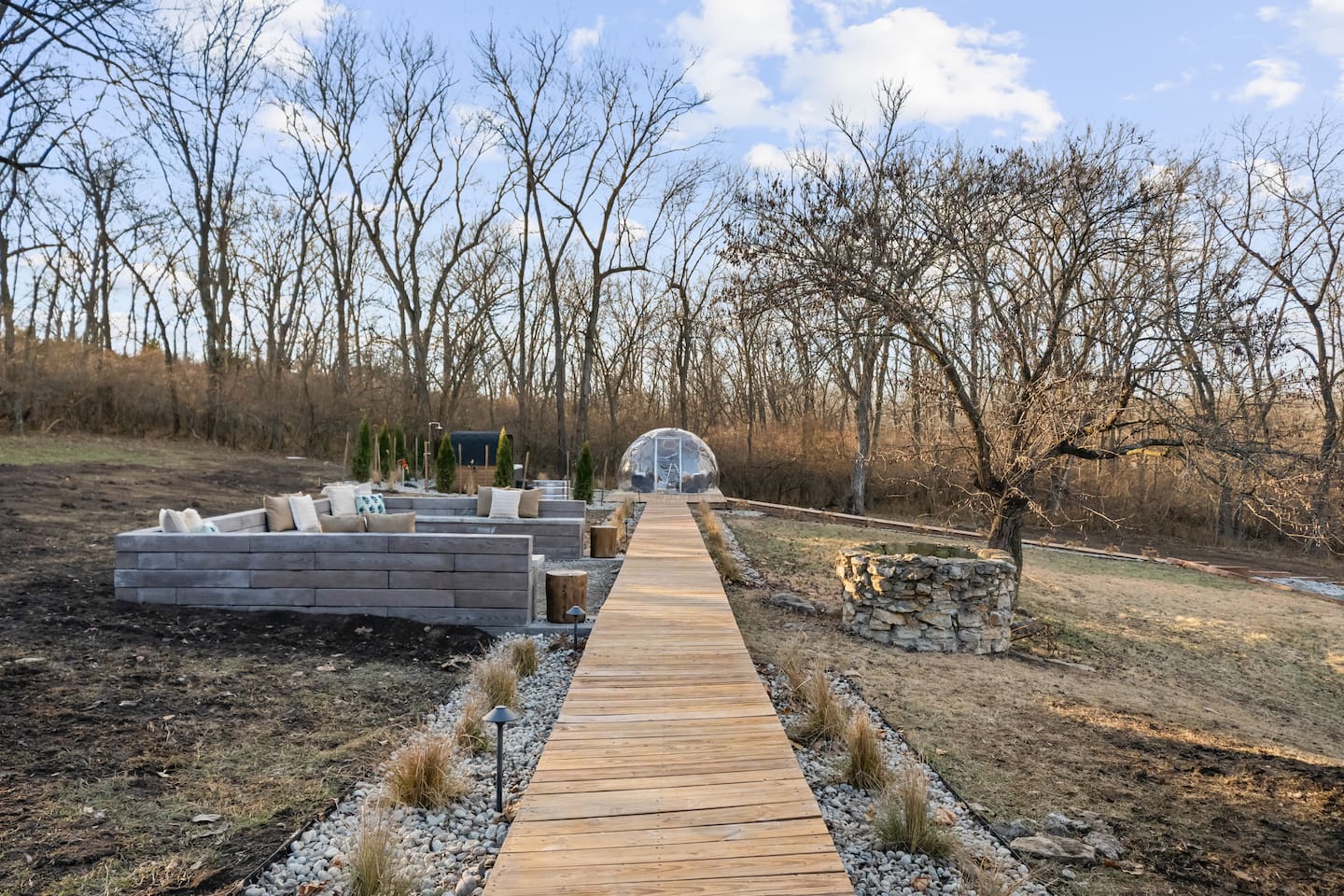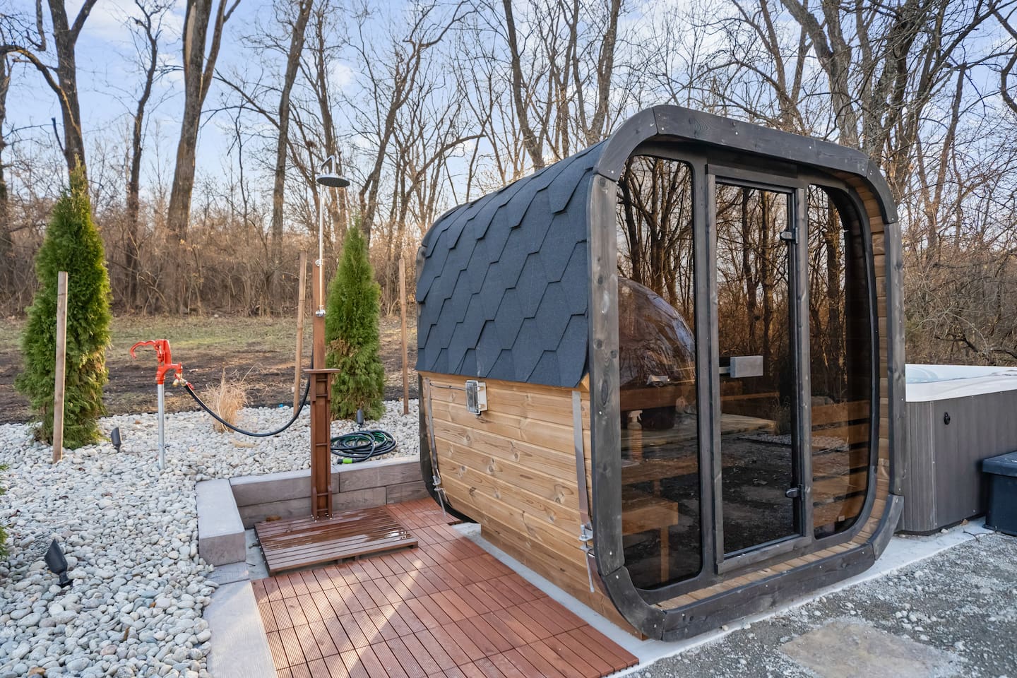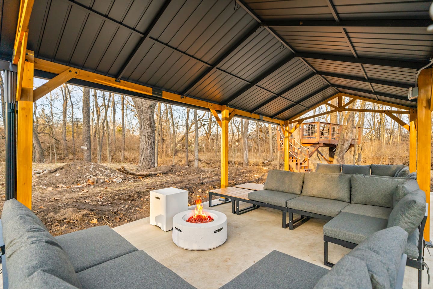 ð– ° Book Now For New Launch Rates! 30% Off Jan+Feb ð– ° Welcome to our pet-friendly modern cabin escape on 6acres! Sleeps 21, newly furnished w/ Crate&Barrel & packed w/ amenities! Enjoy the outdoor hottub/sauna/cold plunge/shower, stargazing dome, outdoor kitchen, firepit lounge, discgolf, treehouse, game room & more! Surrounded by the beauty of nature & you're still close in proximity to all KC has to offer! 17 min to Arrowhead/Royals Stadiums 21 min to Downtown KC 40 min to MCI Airport