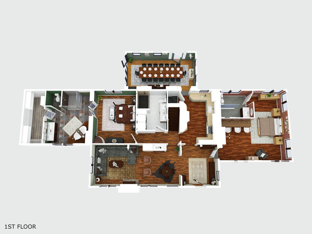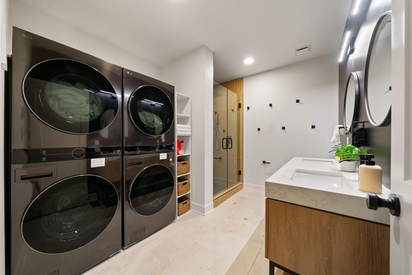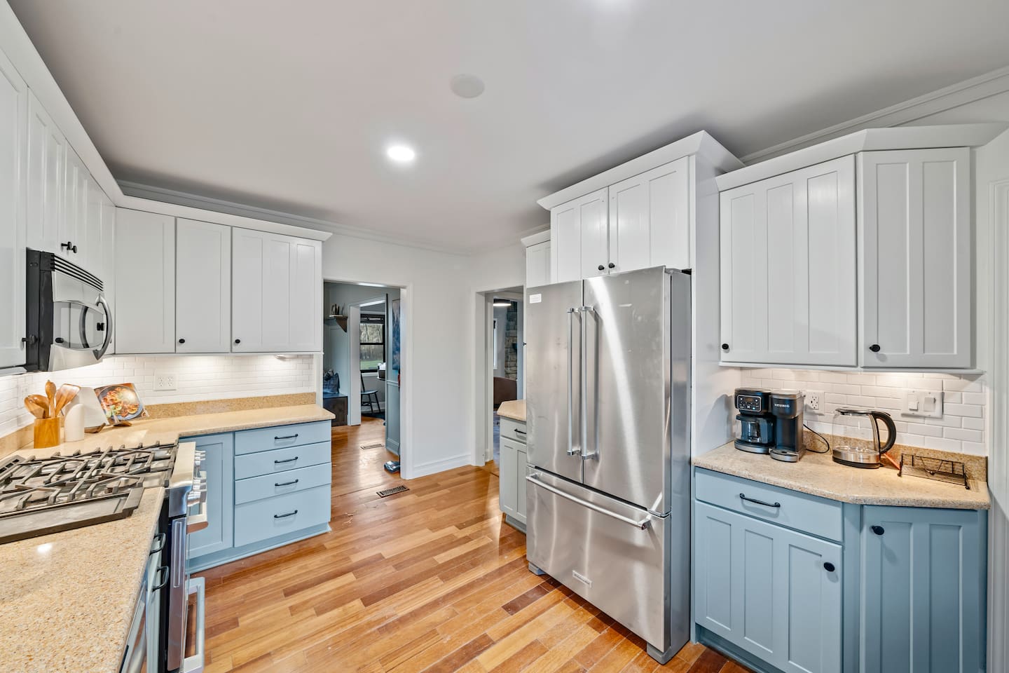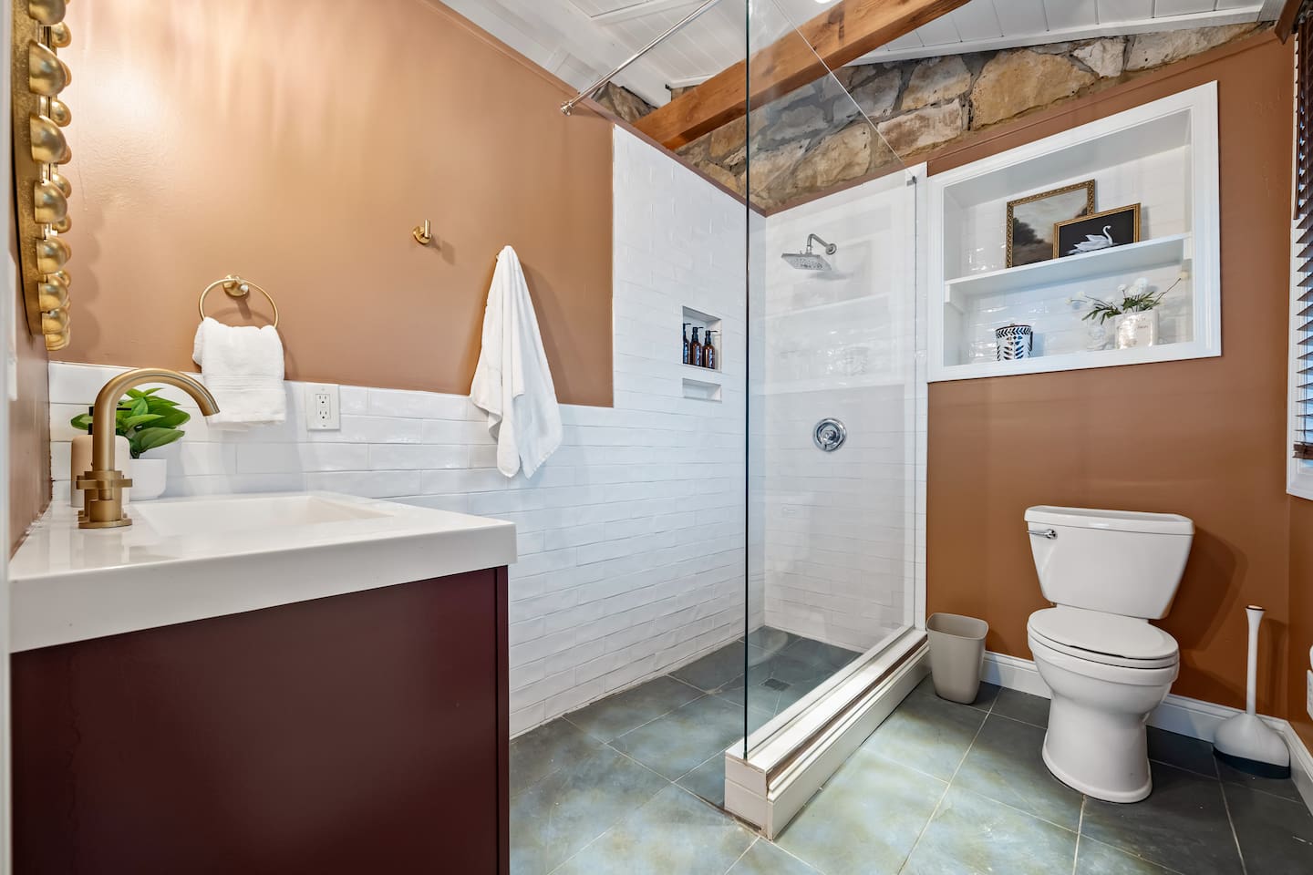 Guests have full access to both the main lodge and the creekside cabin, as well as all indoor and outdoor amenities throughout the 6 acre property. There’s plenty of on-site parking and please no cars should drive or park on the grass. We provide smart lock entry and easy self check-in. Each of the bedrooms are equipped with Roku Smart TVs for your leisure with the exception of the creekside cabin. The property is located only 4 minutes from highway I-49 which allows for easy access to all Kansas City has to offer!